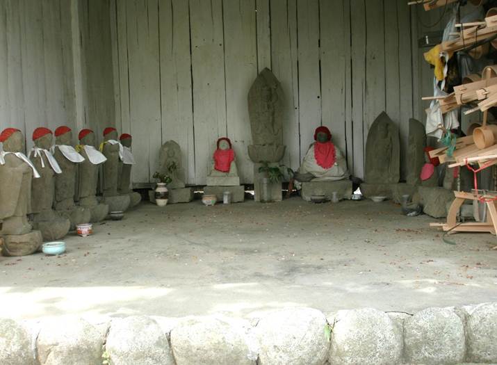墓所の前のお堂の中に、他の十五体の石像と共に袖ケ浦観音の
